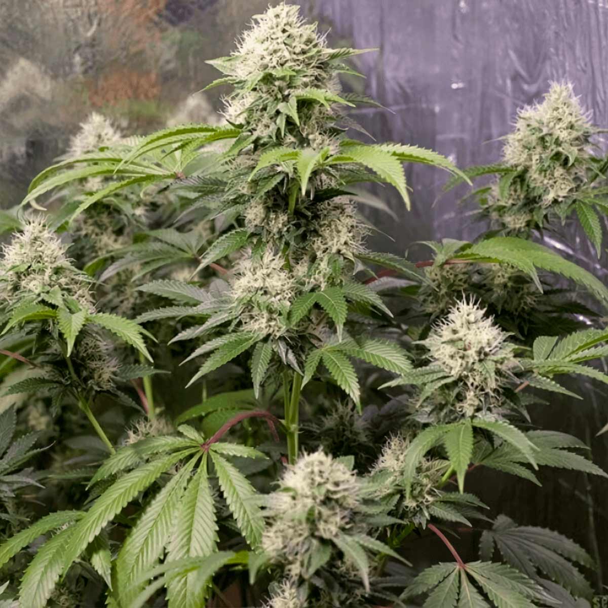 Esta variedad combina dos titanes de la genética americana. Skywalker OG es famosa por su potencia sedante y perfil OG clásico, mientras que Unknown Kush añade profundidad aromática y un extra medicinal que redondea la experiencia. El resultado es una índica poderosa, de rápida floración, muy productiva y con un THC que puede llegar hasta el 28%. American OG es una apuesta segura si buscas un colocón intenso con sabor y aroma envolventes.